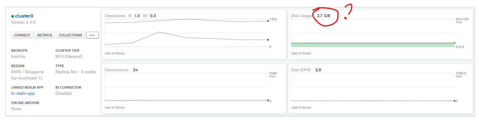 I’ve just created a new paid Atlas cluster. After initialization was done, I saw the disk usage is 2.7 GB, event I didn’t create any data on it.