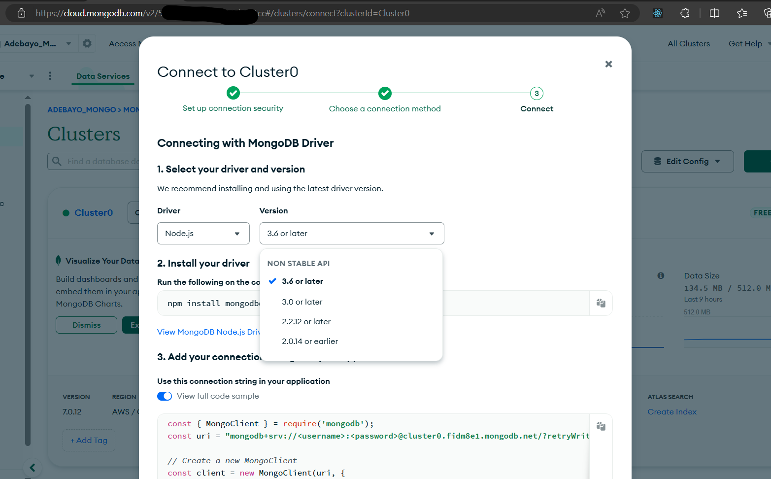 Hi @Adebayo_Omolumo - thank you for flagging this to us. We haven’t been able to reproduce the issue. Are you still unable to see the Stable API versions in the Node.js driver version dropdown?