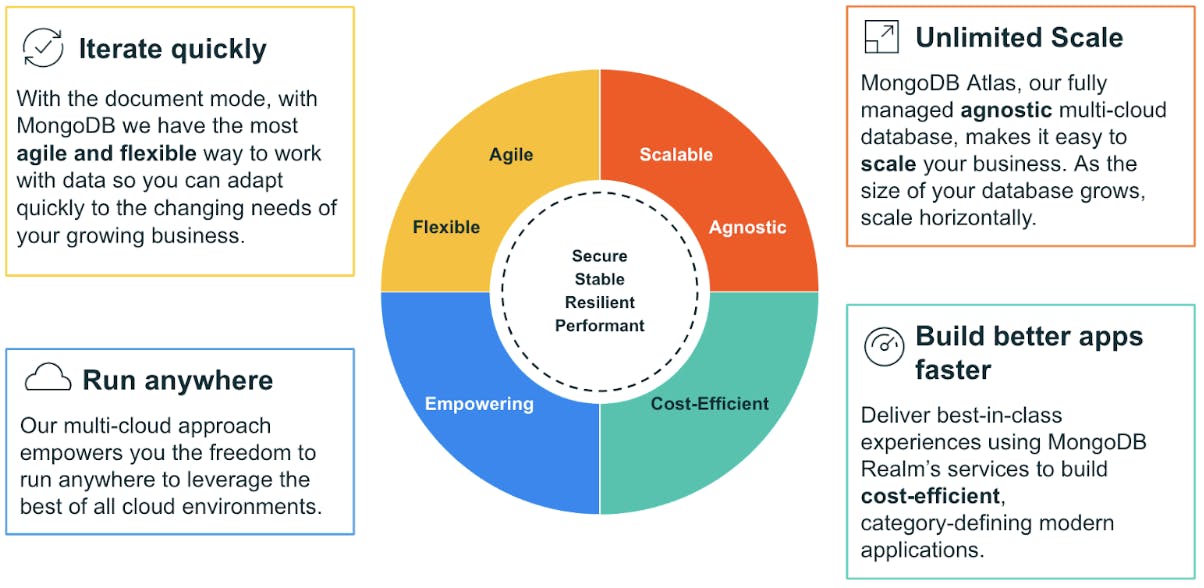 Figure 1: commercetools chose MongoDB because it helps them iterate quickly, gives them unlimited scale, can run anywhere and to build better apps faster.