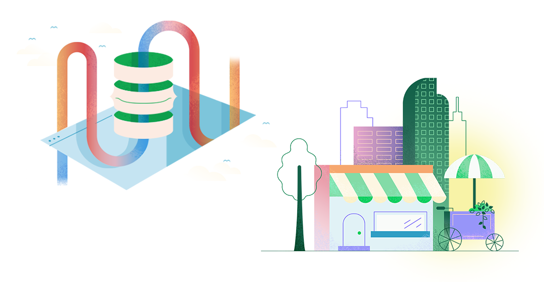 Champa’s illustration for the MongoDB Atlas onboarding experience