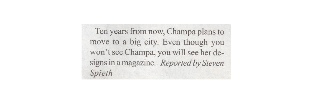 Interview excerpt from Champa's senior-year high school newspaper