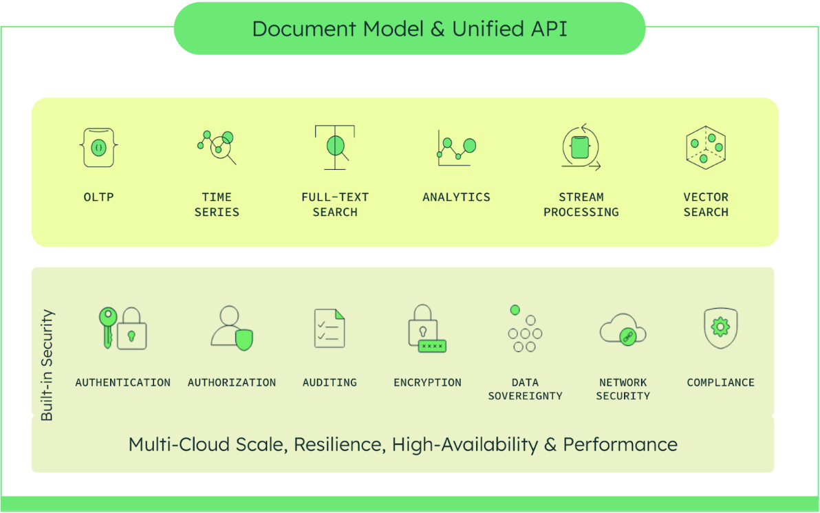 MongoDB's modern database, built on MongoDB Atlas, unifies operational, analytical, and generative AI data services to streamline building intelligent applications. At the core of MongoDB Atlas is its flexible document data model and developer-native query API. Together, they enable developers to dramatically accelerate the speed of innovation, outpace competitors, and capitalize on new market opportunities presented by GenAI.