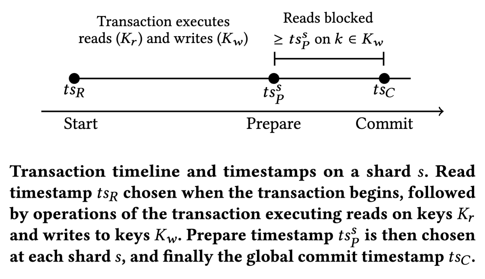 Note also that standard write-conflict checking behavior of snapshot isolation applies during transaction execution at each shard as well. That is, if two concurrent transactions try to update the same key at the same shard, one of them will be forced to abort.