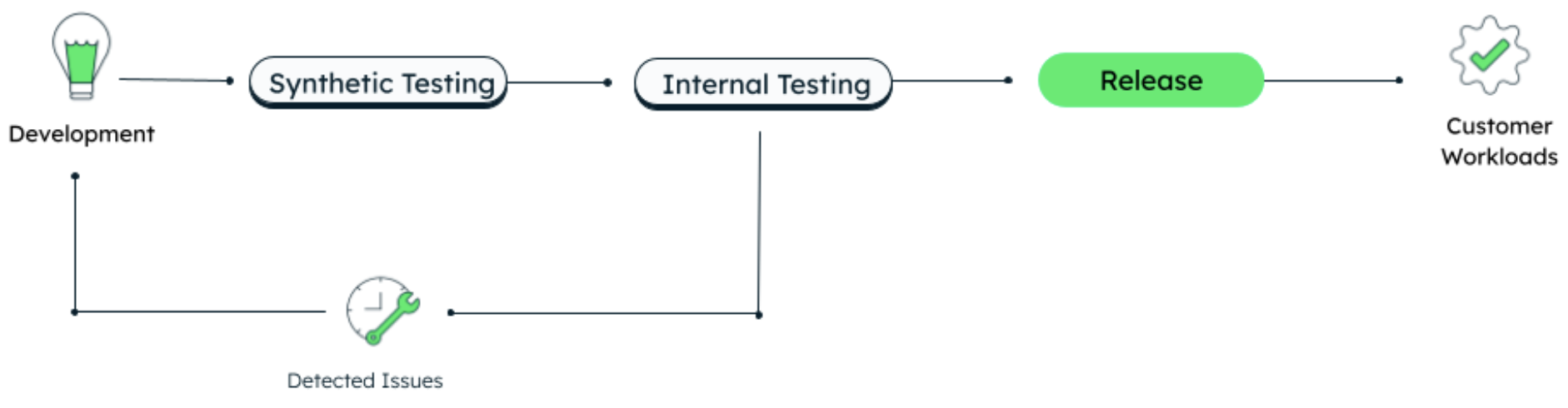 Early identification of issues: Testing internally surfaces issues earlier in the release process, enabling fixes to be deployed proactively before customers encounter them.