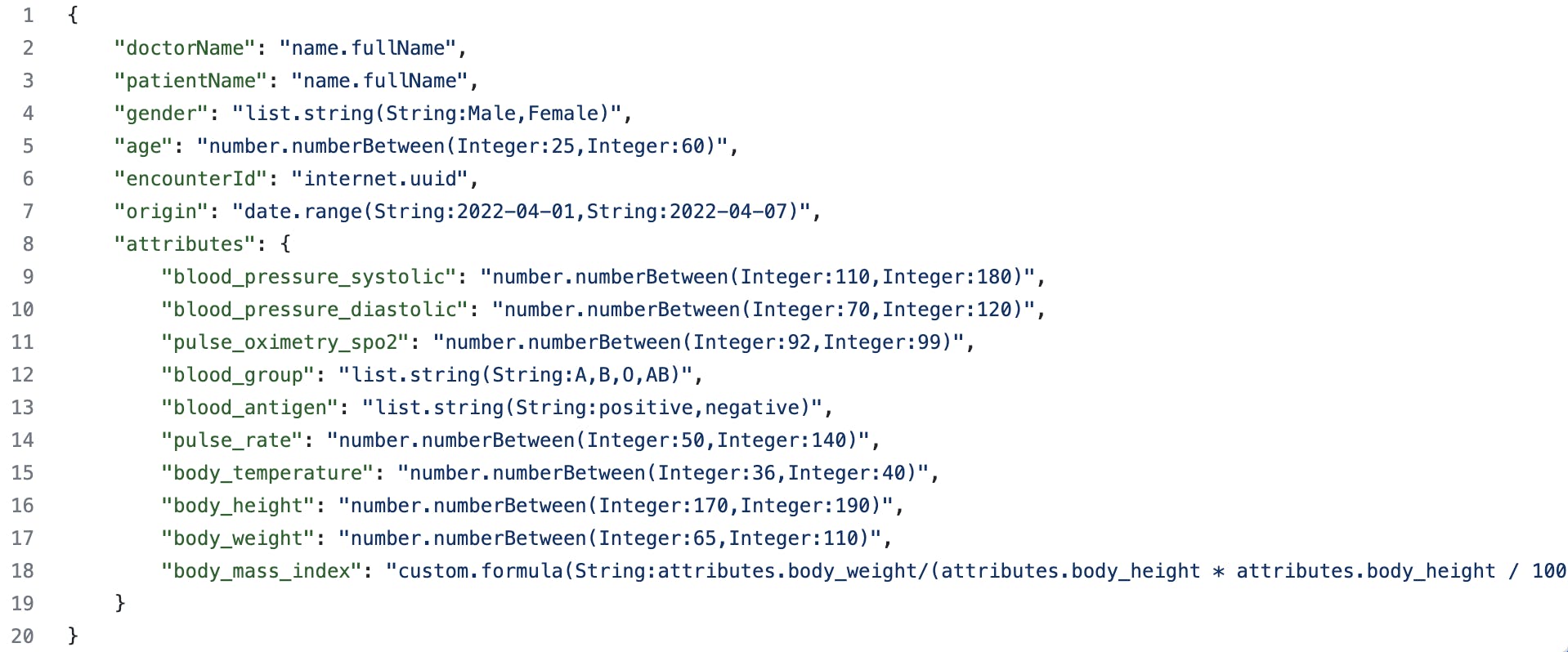 Generating test data for the original openEHR spec requires a more complex configuration as the one below.
