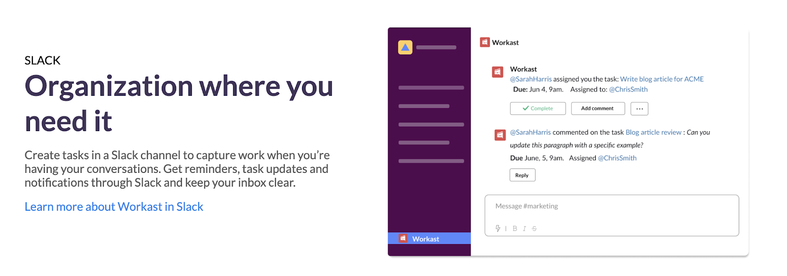 But once I saw how people used Workast, it became clear that for smaller organizations, the app became how the whole company ran. And for larger companies, Workast organized the work in (and eventually across) departments. People were drawn to the fact that they didn’t have to keep switching between communication and collaboration to project management. You didn’t have to invite people to join a project. They were there already because they were in Slack.