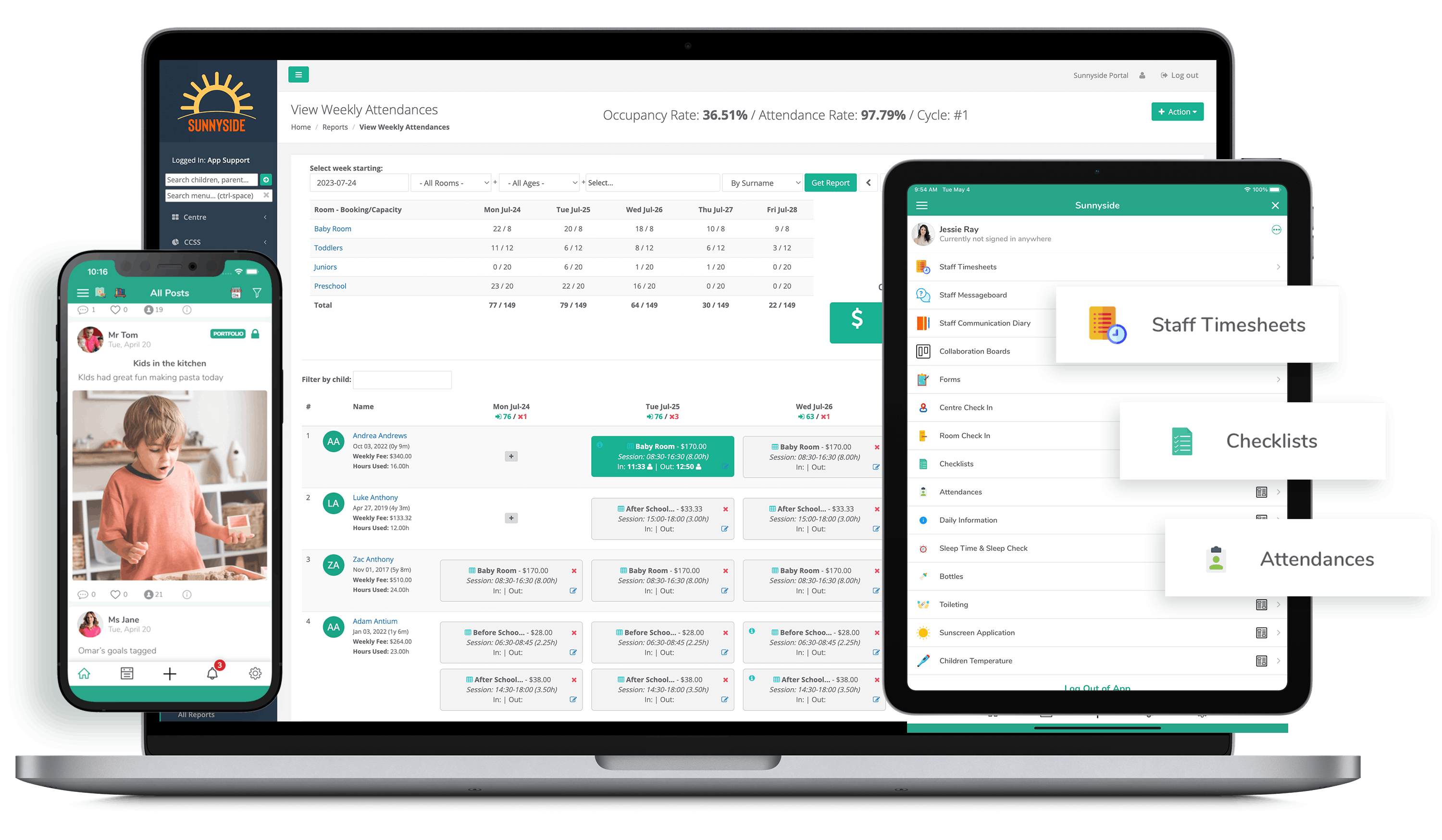 With childcare centers moving toward electronic systems, we also solved another problem – the sprawl of disjointed applications centers used. We learned that there was a lot of switching between apps and copying data to ensure information was synchronized across applications.