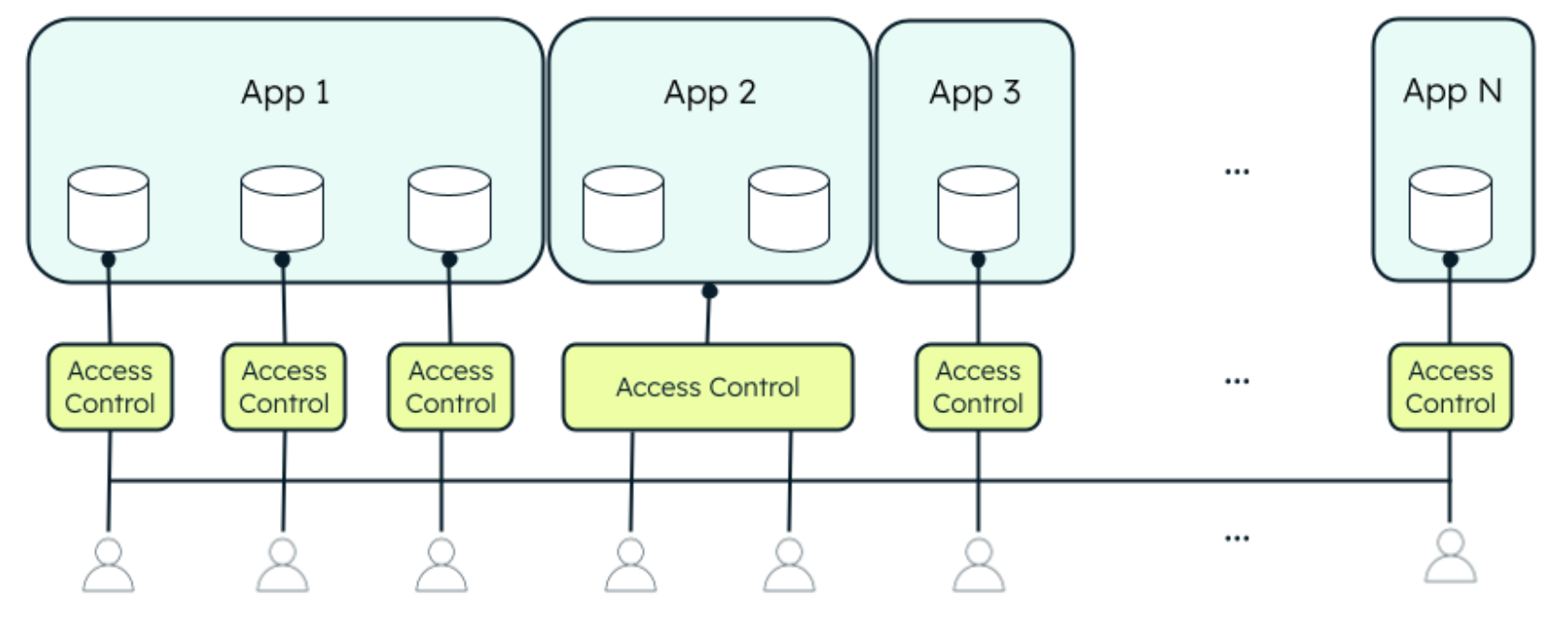 To illustrate the impact of RPS, and to debunk some common misconceptions, let’s explore before and after scenarios. Figure 1 shows the decentralized management of access control. Some data sources employ features such as Field Level Encryption (FLE) to shield data, restricting access to individuals with the appropriate key. Additionally, certain applications implement Role-Based Access Control (RBAC) to regulate data access within the application. Some even come with an Active Directory (AD) interface to try and centralize the configuration.