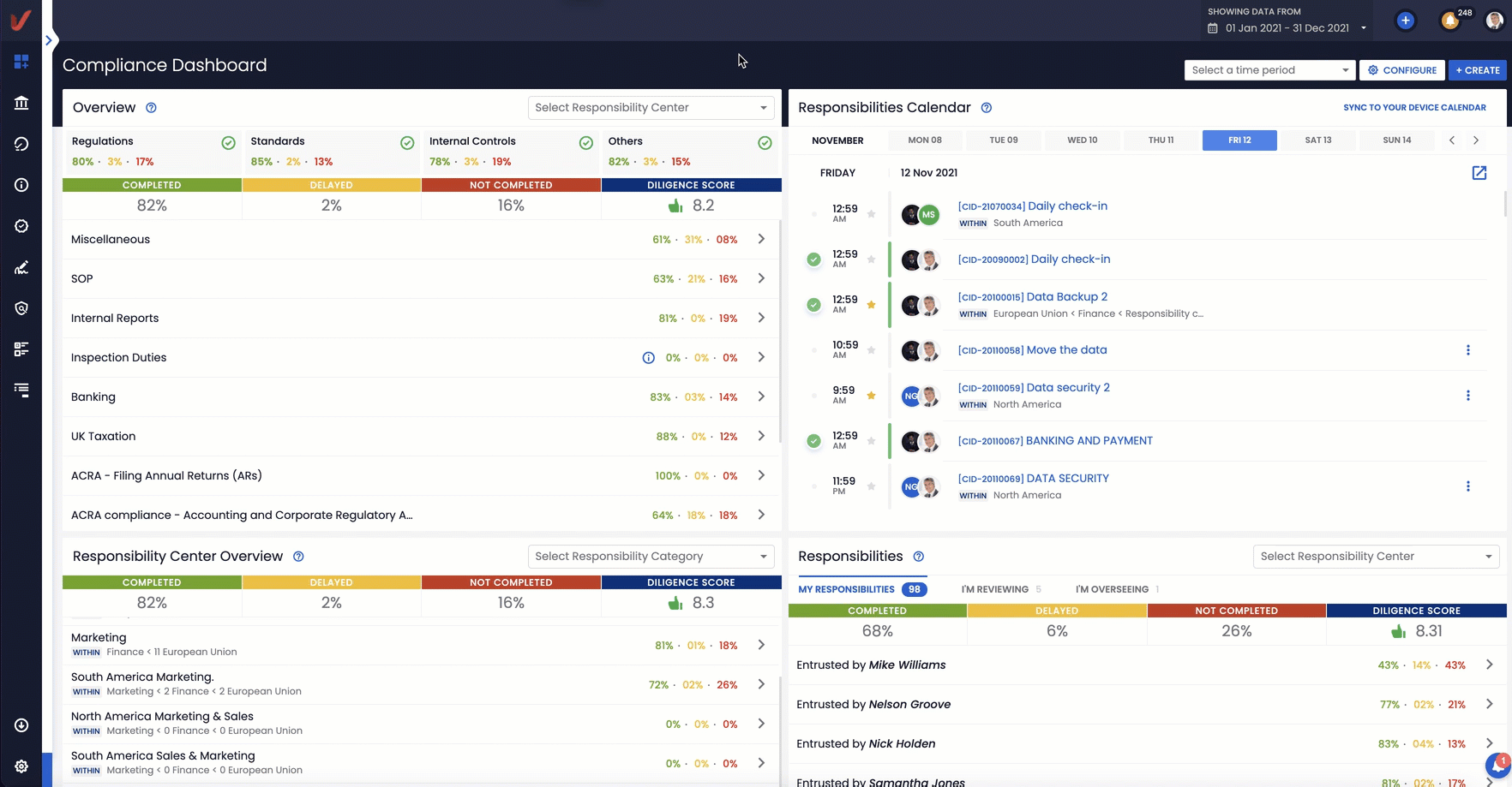 That said, VComply serves as the single source of truth for everything GRC within an organization. Think tracking compliance obligations, compliance monitoring, automating activities, alerts and follow-ups, compliance evidence collection, audit trails, and more.