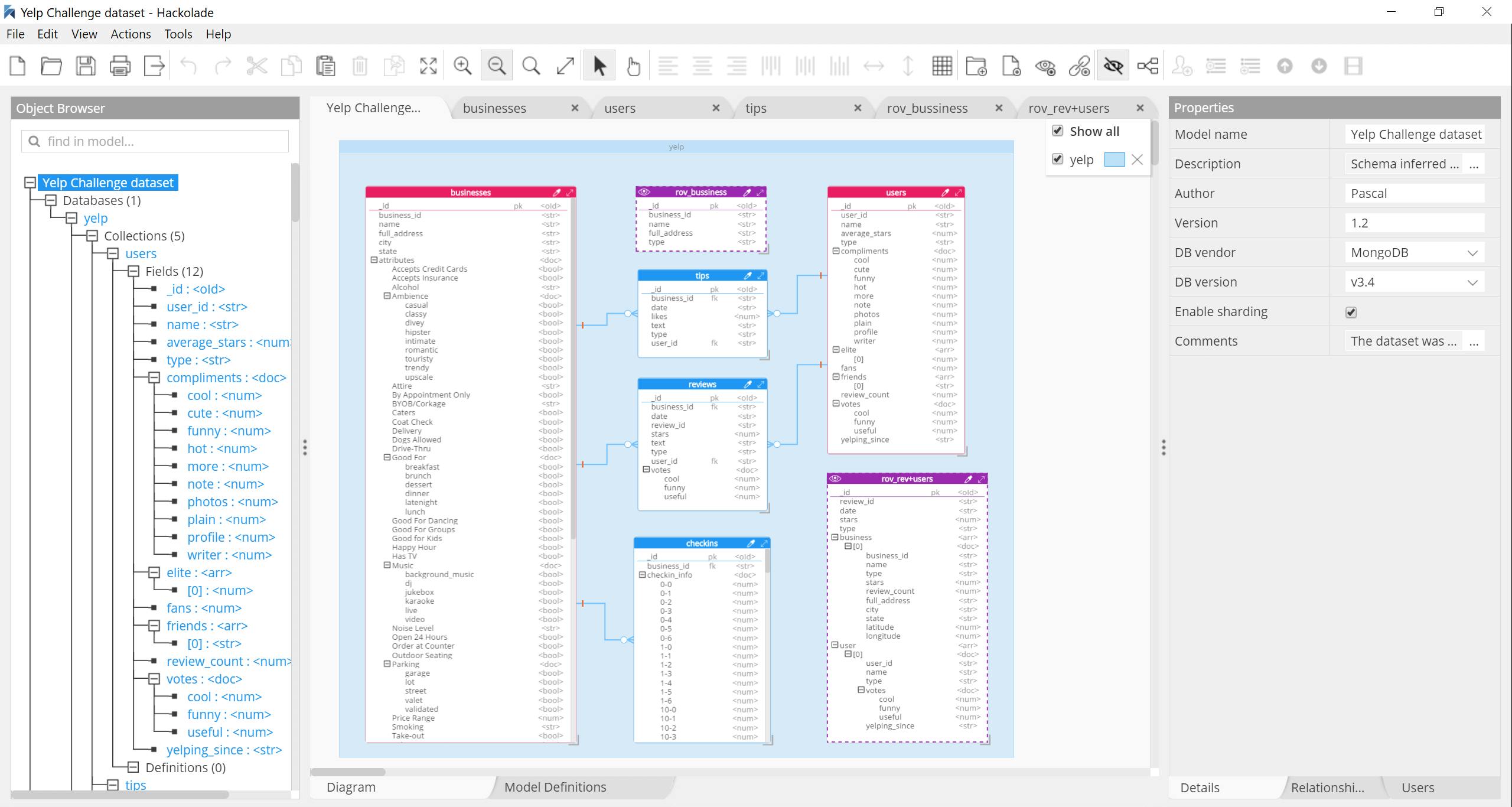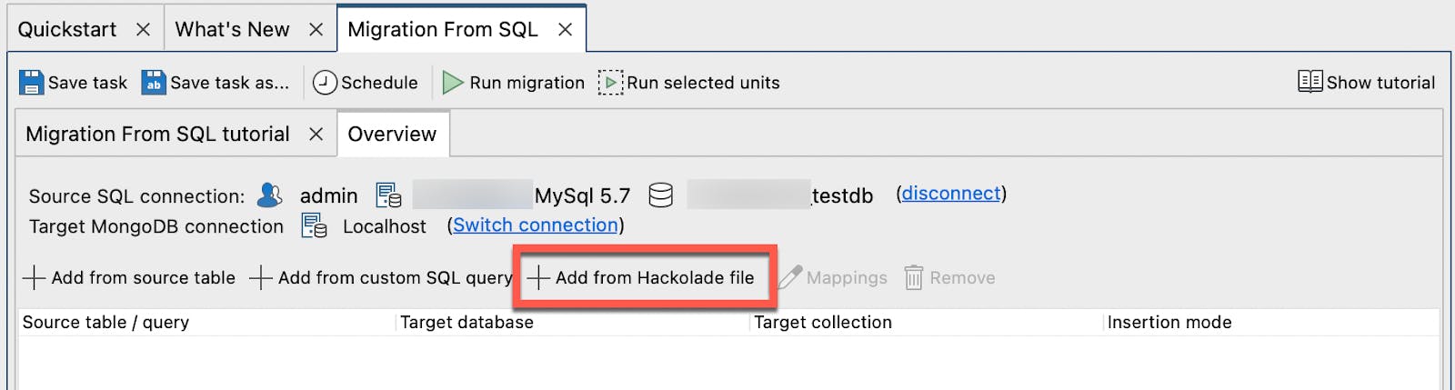 As you can see, Studio 3T is fully capable of some complex migrations through its tooling, SQL Migration, Import and Reschema. However, if you are of the mindset that you should design your migration first, then this is where Hackolade comes in. Hackolade is a "polyglot data" modelling application designed for a world where models are implemented in everything from graphs to APIs to storage formats.