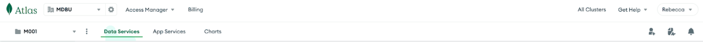 The side navigation is now organized into four categories: Database, Streaming Data, Services, and Security. These categories group Atlas's capabilities to reflect the tasks a developer commonly performs within Atlas, making it easier for them to find the right services for the job.