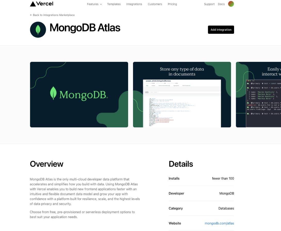 We’re excited to announce that MongoDB Atlas is now available on the Vercel Integrations Marketplace. If you are already using Vercel to develop and ship applications, or considering it for an upcoming project, this integration enables you to add a fully managed MongoDB Atlas database to your Vercel application in a matter of minutes.