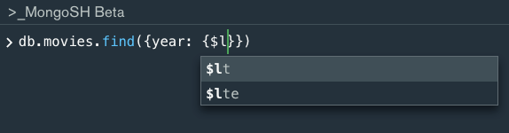 Additionally, the shell comes with intelligent autocomplete to help make sure you are writing the right commands or query operators and to save time when typing.