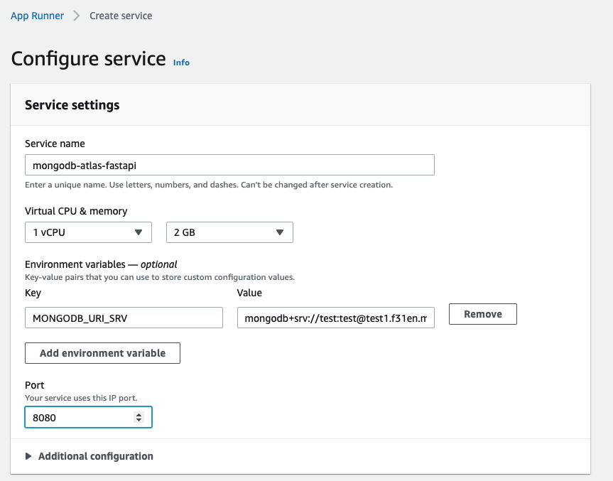 Let’s dive into deploying a real API application with AWS App Runner and Atlas to see just how straightforward it is! We’ll demonstrate an example of a microservice API managing MongoDB documents. For this blog, we’re building off the Getting Started with MongoDB and FastAPI post over on the MongoDB Developer Hub.