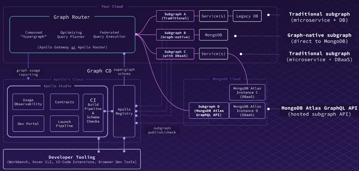 Together, a supergraph and MongoDB Atlas create a composable app stack that eliminates complexity and empowers teams to innovate faster than ever before.
