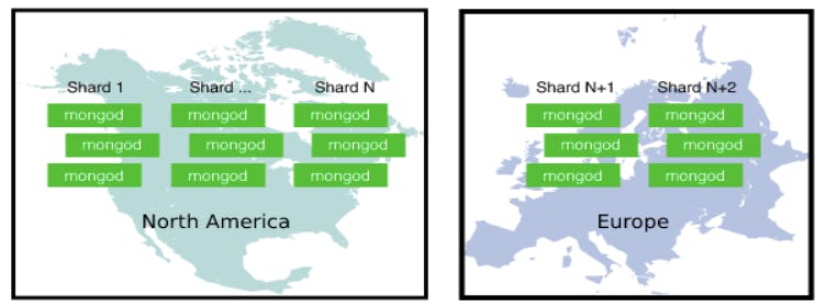 Figure 1 illustrates a sharded cluster that uses geographic zones to manage and satisfy data segmentation requirements.