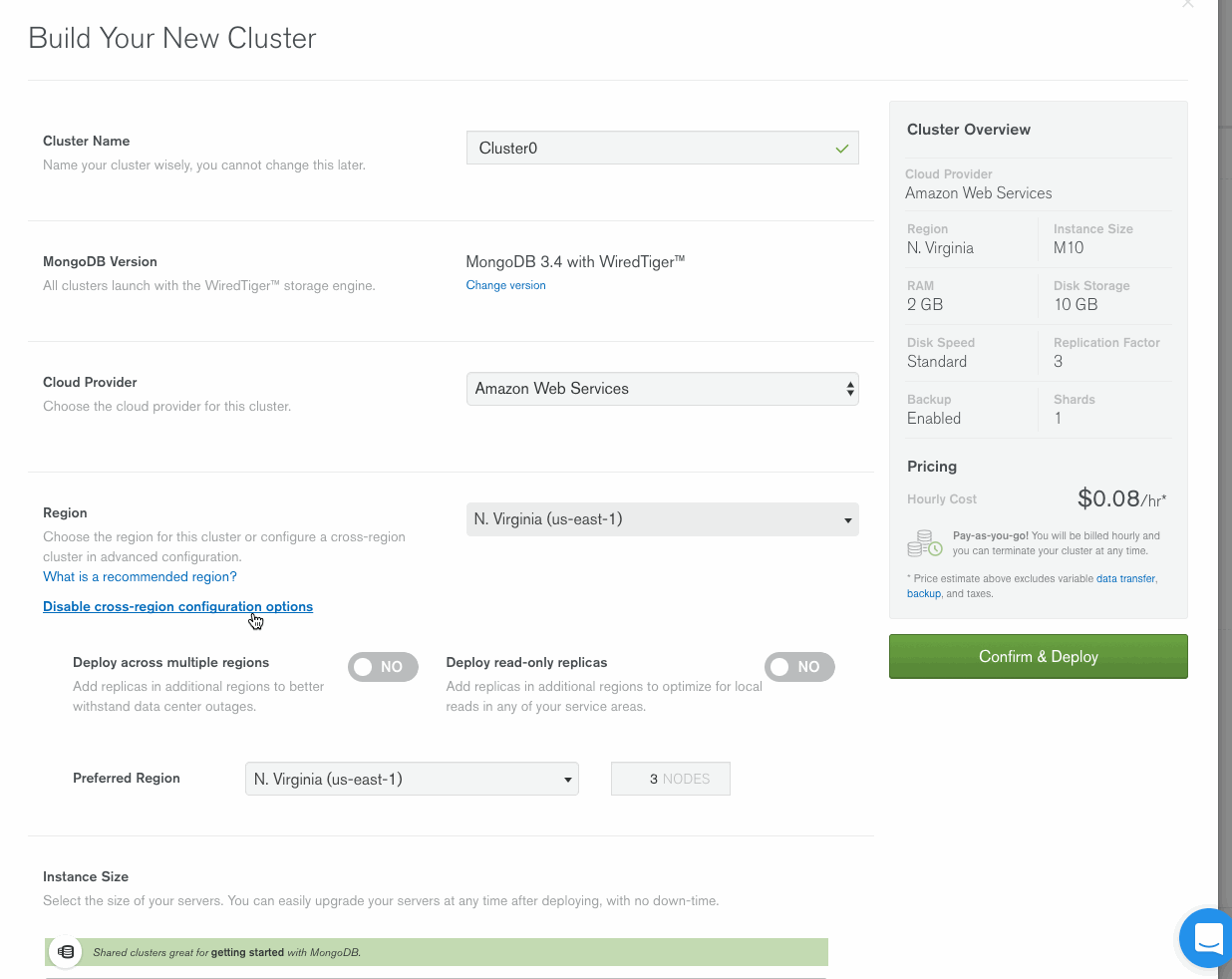 We’ll click "Confirm and Deploy", which will deploy our multi-region cluster.