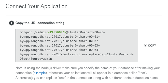 mongodb://admin:<PASSWORD>@cluster0-shard-00-00-bywqq.mongodb.net:27017,cluster0-shard-00-01-bywqq.mongodb.net:27017,cluster0-shard-00-02-bywqq.mongodb.net:27017,cluster0-shard-00-03-bywqq.mongodb.net:27017,cluster0-shard-00-04-bywqq.mongodb.net:27017/test?ssl=true&replicaSet=Cluster0-shard-0&authSource=admin?readPreference=nearest