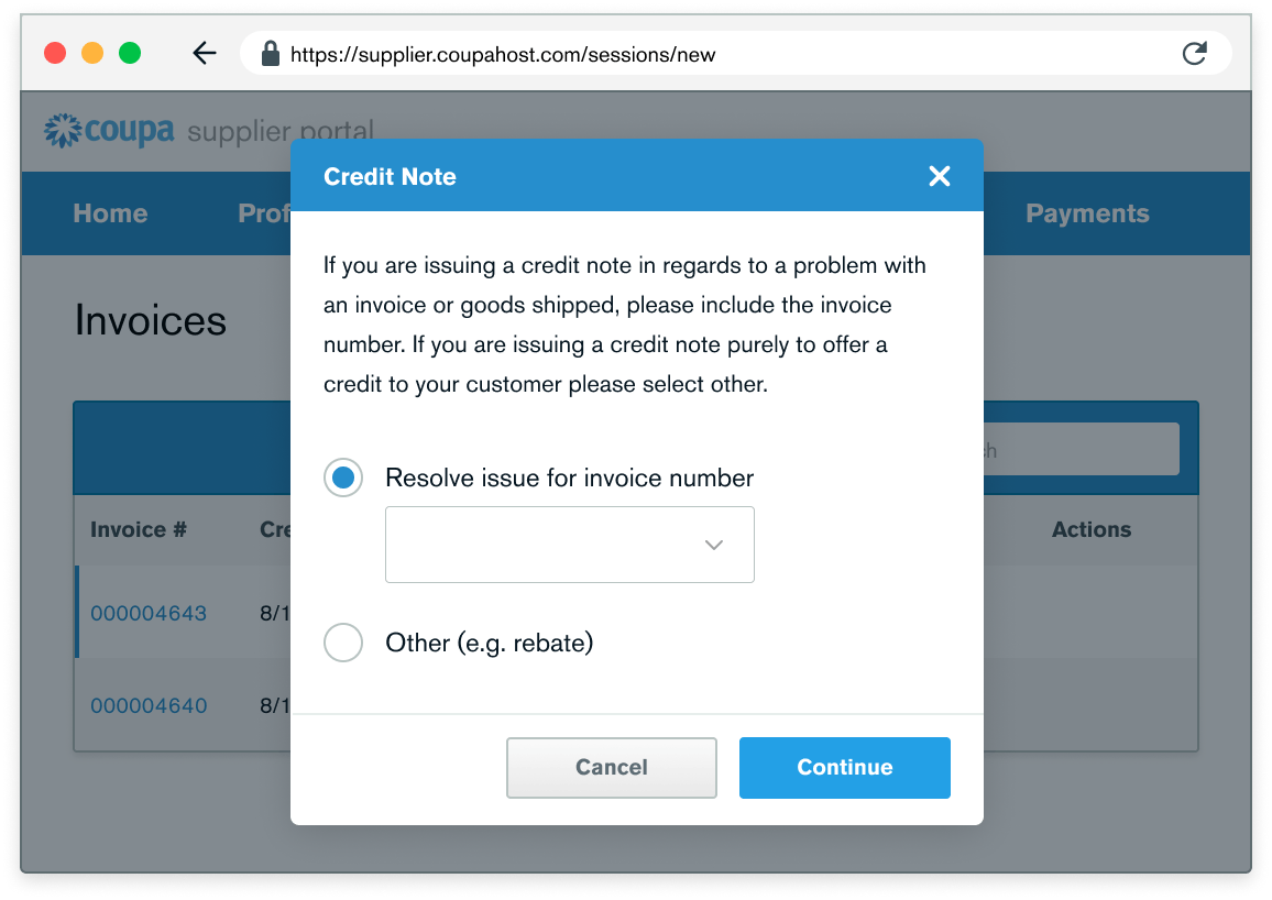 Not everything goes smoothly all the time. Coupa offers a credit system to resolve invoices if needed.