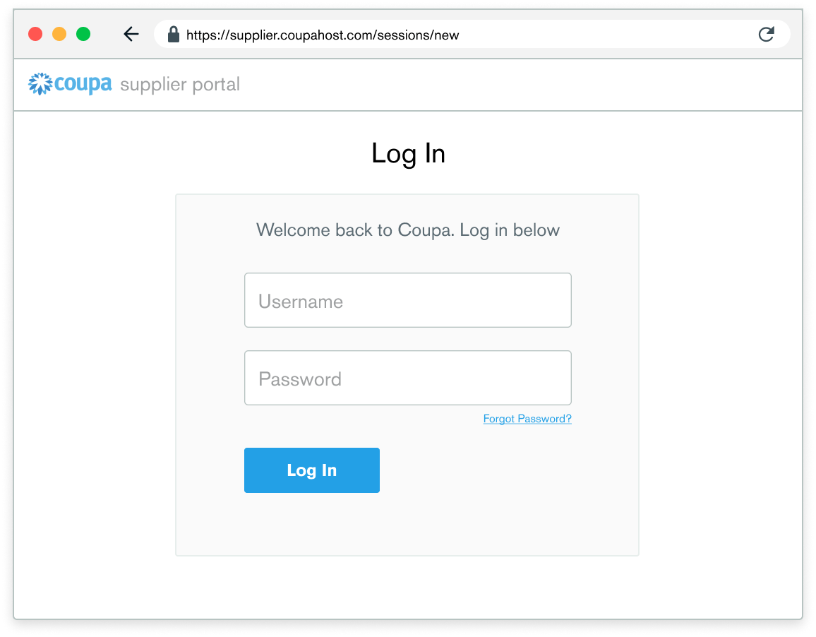 Head over to the Coupa Supplier Portal (CSP) and log in with your Coupa username and password.