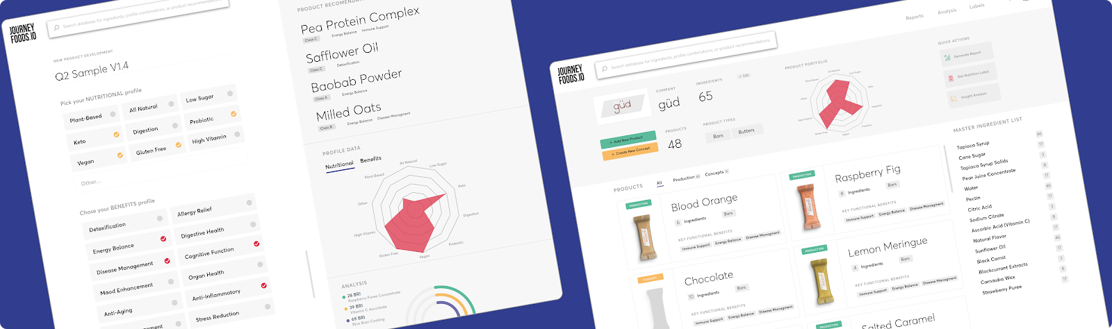 We ended up building it ourselves using Google spreadsheets and a few APIs. I presented some of our early work in March 2019 to 1,500 food companies at a conference in San Francisco. Some of them asked us if we could apply our algorithms to their food products and work with their internal teams. That’s when we decided to take our work and turn it into a SaaS offering, and Journey Foods was born.