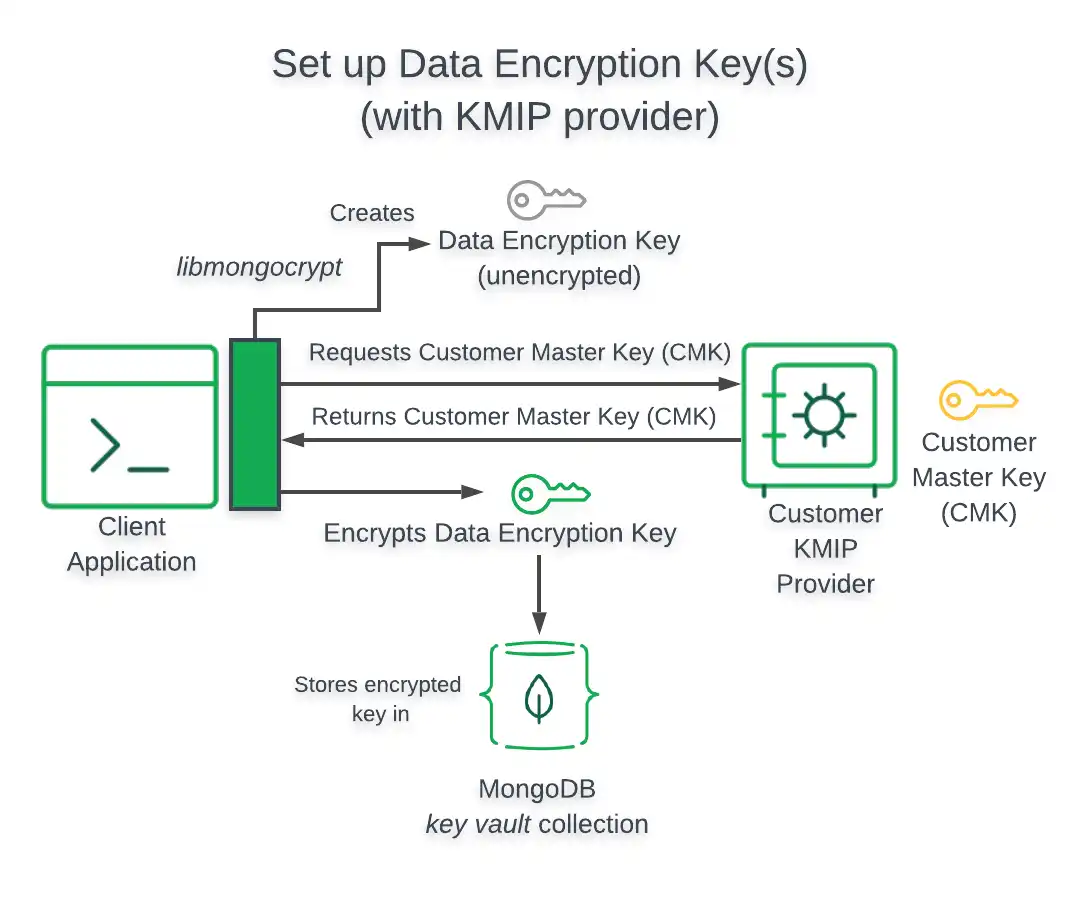 本部分提供了在启用了Queryable Encryption的应用程序中使用符合KMIP的KMS提供商的相关信息。